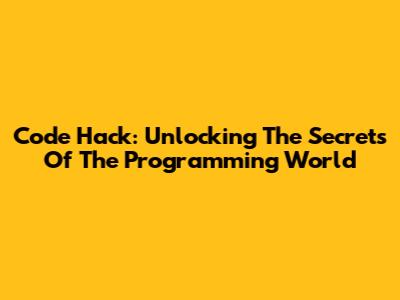 Code Hack: Unlocking The Secrets Of The Programming World