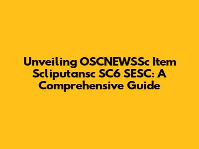 Unveiling OSCNEWSSc Item Scliputansc SC6 SESC: A Comprehensive Guide