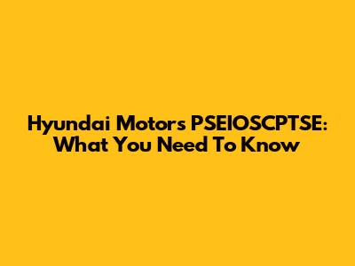 Hyundai Motor's PSEIOSCPTSE: What You Need To Know