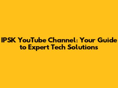Why IPSK YouTube Channel is a Must-Watch for Tech Enthusiasts
