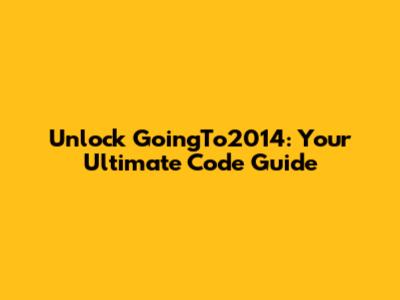 Unlock GoingTo2014: Your Ultimate Code Guide