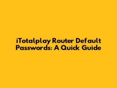 Common iTotalplay Router Default Passwords
