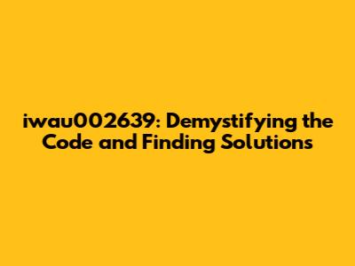 iwau002639 could be a system-specific error code. It's often found in software applications, operating systems, or hardware devices. It could indicate a specific problem within the system, such as a file corruption error, a memory issue, or a configuration problem. Some specific possibilities could be: