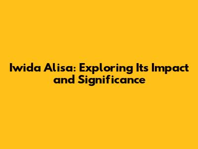 Why Iwida Alisa Matters Today