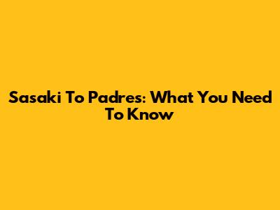 Sasaki To Padres: What You Need To Know