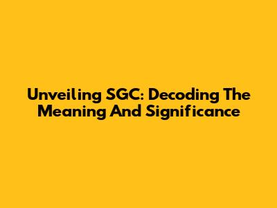 Unveiling SGC: Decoding The Meaning And Significance