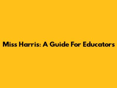 Miss Harris: A Guide For Educators