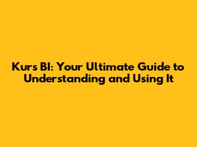 Hey everyone! Ever heard of Kurs BI? If you're scratching your head, no worries, we're diving deep into what it is, why it matters, and how you can actually use it. Think of this as your one-stop shop for everything Kurs BI. Let's get started, shall we?