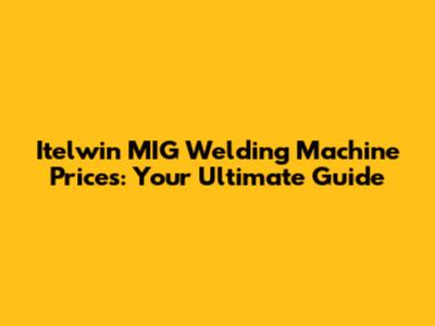 Itelwin MIG Welding Machine Prices: Your Ultimate Guide