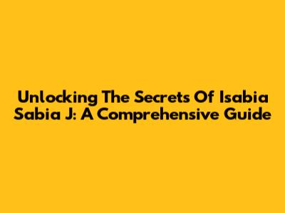 Unlocking The Secrets Of Isabia Sabia J: A Comprehensive Guide