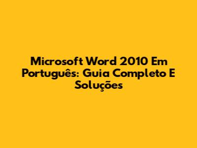 Microsoft Word 2010 Em Português: Guia Completo E Soluções