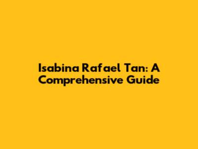 Isabina Rafael Tan: A Comprehensive Guide