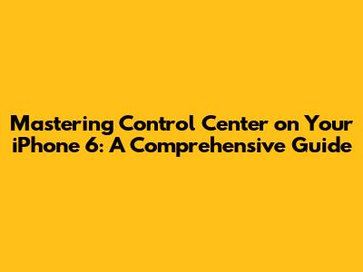 Hey guys! Ever feel like you're fumbling around your iPhone 6 trying to quickly adjust settings or access your favorite apps? Well, you're not alone! The Control Center on your iPhone 6 is a super handy tool designed to give you instant access to frequently used features. But if you're not taking full advantage of it, you're missing out. This guide is here to make you a Control Center pro, showing you everything from the basics to some cool tips and tricks. Let's dive in!