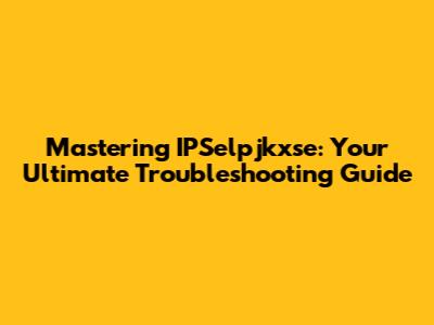Advanced Troubleshooting Techniques for IPSelpjkxse