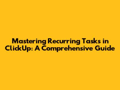 Hey guys! Let's dive into the world of ClickUp and explore how to master recurring tasks. If you're anything like me, you probably have a ton of tasks that need to be done regularly. Whether it's weekly reports, monthly check-ins, or daily reminders, keeping track of these tasks can be a real headache. That's where ClickUp's recurring tasks feature comes in handy. In this comprehensive guide, we'll walk you through everything you need to know to set up, manage, and optimize your recurring tasks in ClickUp, so you can stay organized and productive.