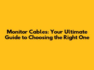 Understanding the Different Types of Monitor Cables