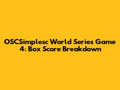 OSCSimplesc World Series Game 4: Box Score Breakdown
