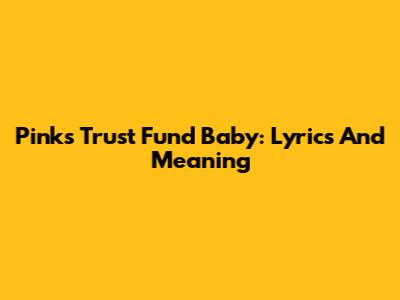 Pink's Trust Fund Baby: Lyrics And Meaning