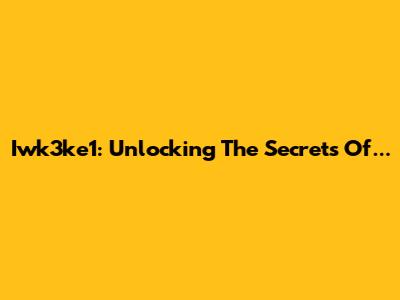 Iwk3ke1: Unlocking The Secrets Of...