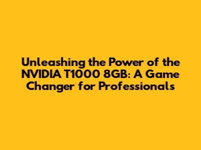 Unleashing the Power of the NVIDIA T1000 8GB: A Game Changer for Professionals