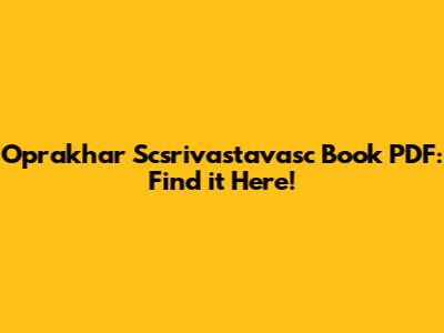 If you're unable to find the Oprakhar Scsrivastavasc book PDF, here are some alternative resources to consider: