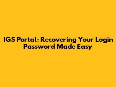 IGS Portal: Recovering Your Login Password Made Easy
