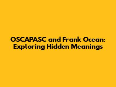 The Frank Ocean Connection: Where Does OSCAPASC Fit In?