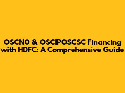 Hey there, finance enthusiasts! Let's dive deep into the world of OSCN0 and OSCIPOSCSC financing, specifically how HDFC steps in to make things happen. This guide is designed to break down everything you need to know, from the basics to the nitty-gritty details, ensuring you're well-equipped to navigate the financing landscape. Whether you're a seasoned investor or just starting out, understanding the financing options available can be a game-changer. We'll explore what these terms mean, why they matter, and how HDFC, one of India's leading financial institutions, can help you achieve your financial goals. Get ready to boost your knowledge and make informed decisions – let's get started!