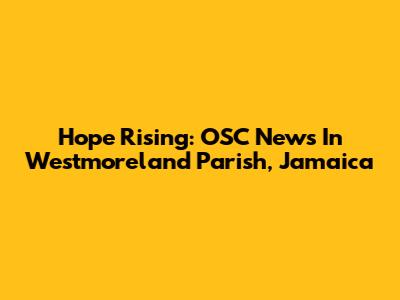 Hope Rising: OSC News In Westmoreland Parish, Jamaica