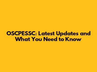 What is OSCPESSC and Why the Fuss?