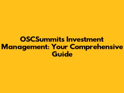 What Does OSCSummit's Investment Management Offer?