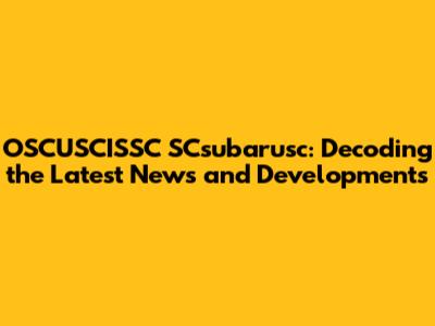 Understanding OSCUSCISSC SCsubarusc: A Quick Overview
