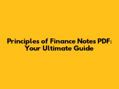 Where to Find Principles of Finance Notes PDF
