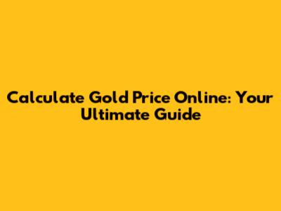 Calculate Gold Price Online: Your Ultimate Guide