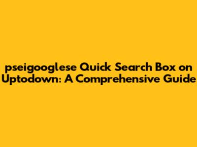 Hey guys! Ever stumbled upon something super useful online and thought, "Wow, I wish I knew about this sooner"? Well, today we're diving deep into one of those hidden gems: the pseigooglese Quick Search Box, especially as it hangs out on Uptodown.com. If you're scratching your head right now, don't sweat it! We're going to break down exactly what it is, why it's awesome, and how you can get your hands on it. Trust me; by the end of this article, you'll be a pro.