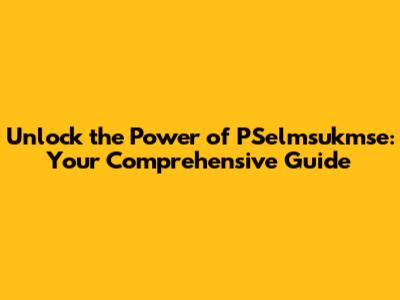 Unlock the Power of PSelmsukmse: Your Comprehensive Guide