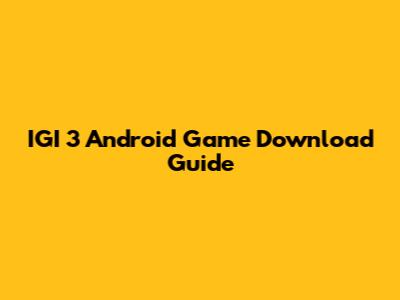 IGI 3 Android Game Download Guide