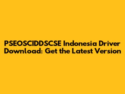 Now, when it comes to the PSEOSCIDDSCSE driver specifically, it’s often associated with devices or systems used in Indonesia. The "Indonesia" tag hints at localization or regional compatibility, making it tailored for specific hardware models sold or used within the country. This localization ensures that the hardware functions optimally under the specific standards and configurations prevalent in Indonesia.