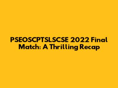 Hey guys, let's dive into the epic PSEOSCPTSLSCSE 2022 final match! It was a real nail-biter, packed with intense action, strategic plays, and moments that had us all on the edge of our seats. This isn't just a recap; it's a deep dive into the highlights, key moments, and the overall atmosphere of this unforgettable event. We're going to break down the strategies, the individual performances, and the sheer grit and determination that defined the final showdown. So, grab your snacks, settle in, and let's relive the glory of the PSEOSCPTSLSCSE 2022 final match together! This final match wasn't just a game; it was a culmination of weeks, if not months, of hard work, dedication, and the pursuit of excellence. The teams poured their hearts and souls into every practice, every strategy session, and every moment leading up to this grand finale. The stakes were high, the pressure was immense, but the players rose to the occasion, delivering a performance that will be etched in the memories of fans for years to come. From the opening moments, you could feel the electric energy in the air. The crowd was buzzing, the commentators were hyped, and the players were locked in, ready to give it their all. The atmosphere was a perfect blend of excitement, tension, and anticipation, creating an experience that was truly unforgettable. The PSEOSCPTSLSCSE 2022 final match wasn't just about winning; it was about the journey, the camaraderie, and the unwavering spirit of competition. It was a testament to the power of teamwork, the importance of strategy, and the ability to overcome challenges. And for those of us who had the chance to witness it live, it was an experience that we'll cherish forever.