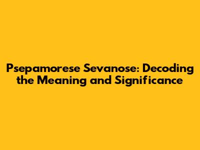 Hey guys, let's dive into something a bit mysterious, shall we? Today, we're cracking the code on "Psepamorese Sevanose." This phrase might sound like something out of a fantasy novel, or maybe even a secret code. But don't worry, we're going to break it down, understand its significance, and see where it comes from. We'll explore what it really means and why it's something people are looking up. So, fasten your seatbelts, because we're about to go on an adventure to understand the meaning of Psepamorese Sevanose, and the whole shebang!