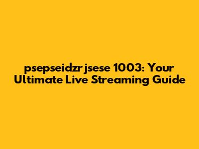 Setting Up Your psepseidzrjsese 1003 Live Stream: A Step-by-Step Guide