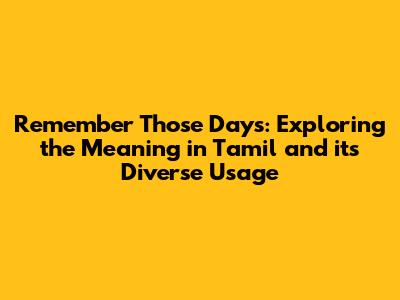 Hey everyone! Ever found yourselves lost in a wave of nostalgia, thinking about the "remember those days" moments? Well, let's dive deep into what this phrase means in Tamil, how we use it, and why it hits us right in the feels. We will explore the phrase's various applications and contextual nuances. So, grab a cup of your favorite beverage, sit back, and let's decode "remember those days" in Tamil!