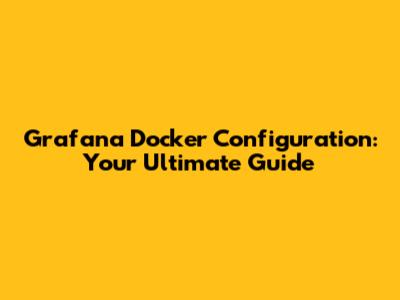 Grafana Docker Configuration: Your Ultimate Guide