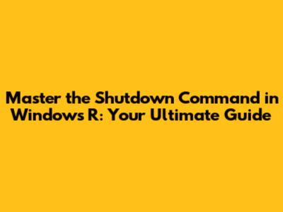 Master the Shutdown Command in Windows R: Your Ultimate Guide
