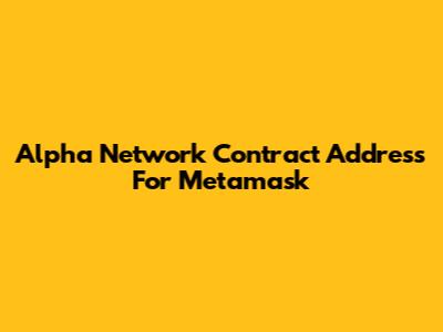 Alpha Network Contract Address For Metamask