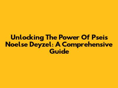 Unlocking The Power Of Pseis Noelse Deyzel: A Comprehensive Guide