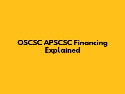 OSCSC APSCSC Financing Explained