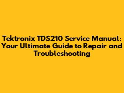 Having the Tektronix TDS210 service manual in your toolkit is like having a secret weapon. Here's why it's so important: