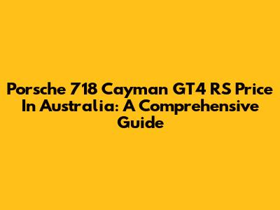 Porsche 718 Cayman GT4 RS Price In Australia: A Comprehensive Guide