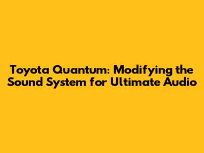 Hey there, audio enthusiasts! Are you thinking about upgrading the sound system in your Toyota Quantum? You've come to the right place. In this article, we're diving deep into the world of modifying the sound system in your Toyota Quantum, covering everything from planning your upgrade to choosing the right components and getting it professionally installed. Get ready to transform your ride into a mobile concert hall!